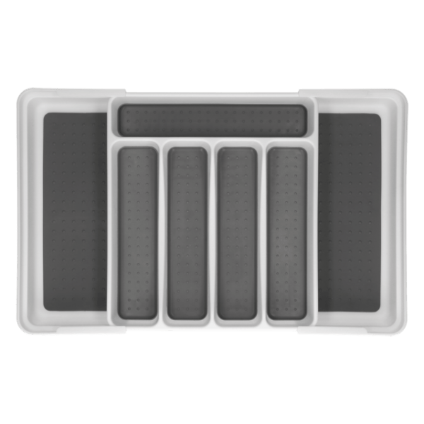 Possui cinco compartimentos com fundo antiderrapante para manter os seus talheres no lugar. Quando estendidos, dois compartimentos adicionais oferecem ainda mais espaço de armazenamento.