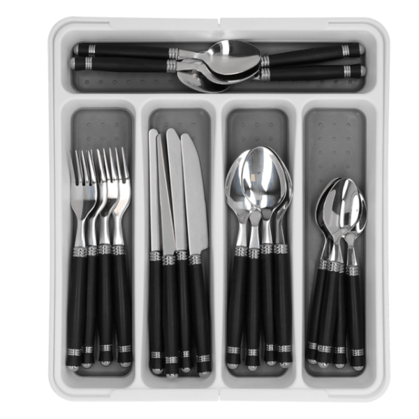 As almofadas antiderrapantes na parte inferior garantem que a bandeja de talheres fique firmemente no lugar.